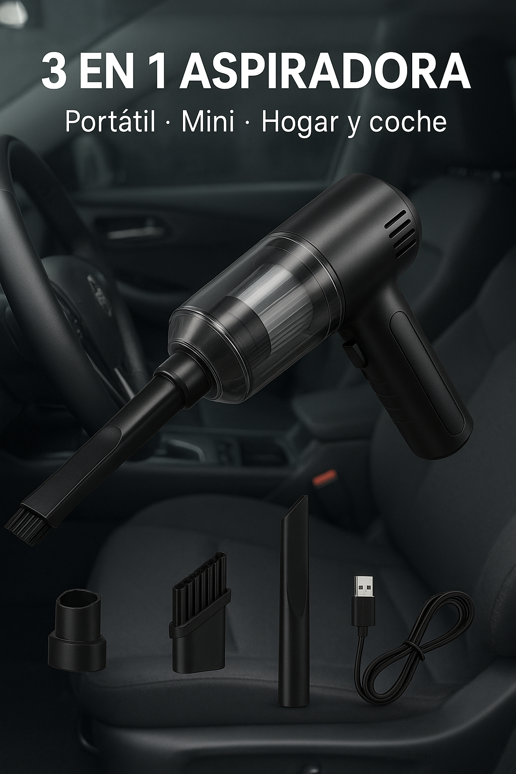 ¿Estás cansad@ de esos aspiradores gigantes que no caben en ningún lado y que tienen una succión... digamos... "decepcionante"? 😩 ¡Olvídate de eso! Te presento el gadget que va a revolucionar la limpieza de tu coche: ¡nuestro aspirador de mano portátil!